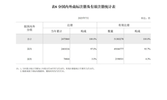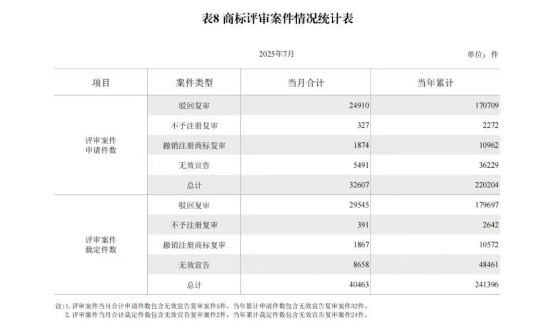 附:2025年7月国家知识产权局审查注册登记统计月报